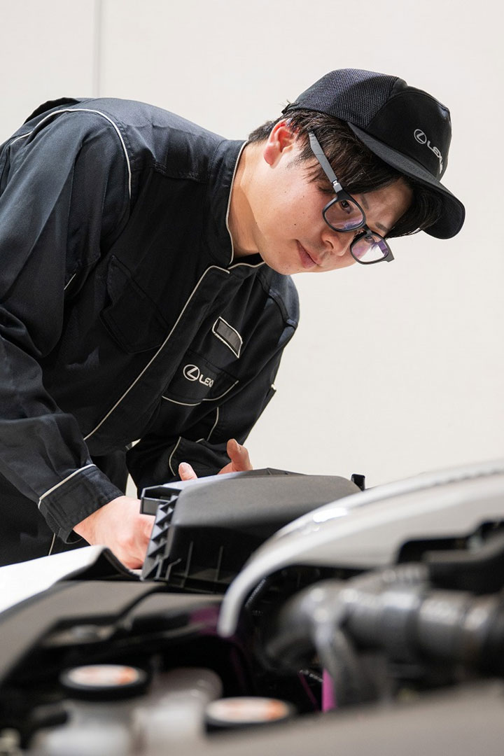 作業内容自体はトヨタと大きく変わりませんが、お客様が求める”質”はワンランク上です。仕上げひとつとっても、水一滴残さないレベルの精度が当たり前に求められます。他の高級車ブランドと比較されることもあり、レクサスブランドの価値を背負っているという良い緊張感を常に感じています。だからこそ、毎日の整備が自分を高めるチャンスです。高い期待に応えるため、技術もホスピタリティも丁寧に磨きながら、レクサスの名にふさわしい仕事を追求しています