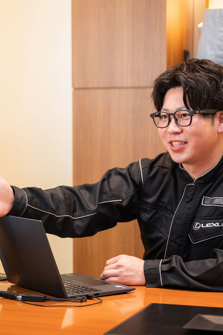 やりがいを感じるのは、お客様から「ありがとう」と言っていただける瞬間。整備内容を丁寧に説明し、表情がふっとゆるむと、自分の技術が安心につながったことを実感します。接客では「問題ありませんでしたよ」と落ち着いたトーンの声で伝え、不安を解消することを大切にしています。レクサスでは、言葉づかいや所作もブランドの一部。完璧さと温かさを両立させるバランスこそが、仕事の面白さです。